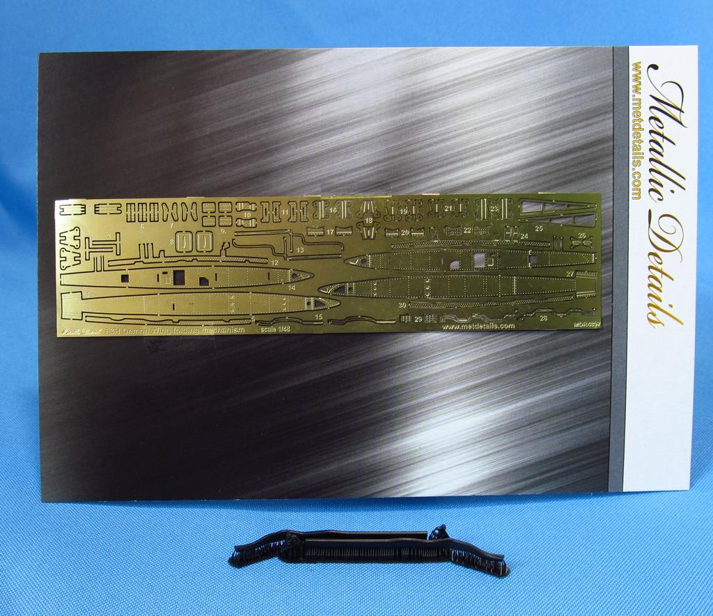 Set contains photoetched and 3D-printed parts for detailing of wing folding mechanism.